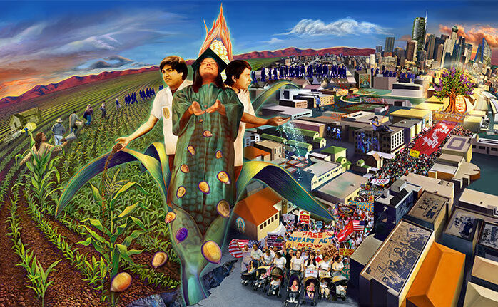 Judith Francisca Baca é uma artista, educadora e ativista cultural norte-americana de origem mexicana cuja trajetória está profundamente ligada à arte pública, à memória coletiva e à representação das comunidades latinas nos Estados Unidos. Nascida em 1946, em Los Angeles, Baca tornou-se uma das figuras mais importantes da arte comunitária contemporânea, especialmente por seu trabalho com murais monumentais e projetos colaborativos que envolvem diretamente comunidades historicamente marginalizadas. Sua produção articula arte, história social e ativismo político, criando obras que não apenas ocupam o espaço urbano, mas também reescrevem narrativas históricas frequentemente excluídas dos relatos oficiais.